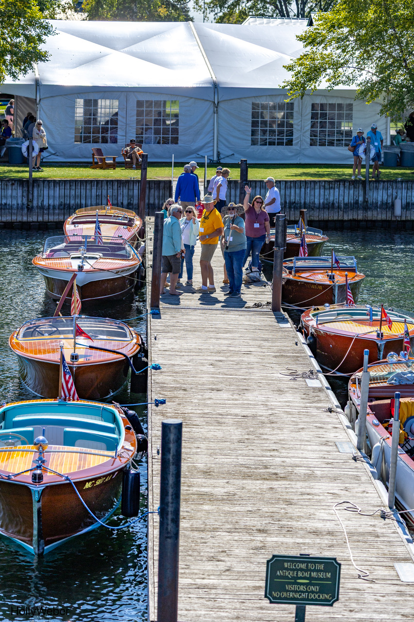 Lots of high-fives, smiles, chapeau’s, colorful garb were noticeable. Also visible was a very rare (white and blue fiberglass) Chris-Craft Corsair…trucked to Northern New York from California; The Museum’s Zipper; Another dashing Century “Sabre”; and the Boardman’s 21-foot Chris-Craft Holiday Gull Wing Hardtop to add to the mix.