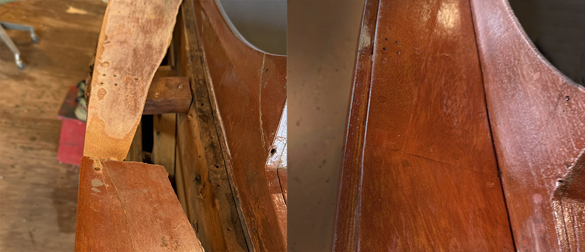 The transom, this has been a bit of a journey. The seam needed to be smoothed out and then the same graining, but while allowing it to be a seam