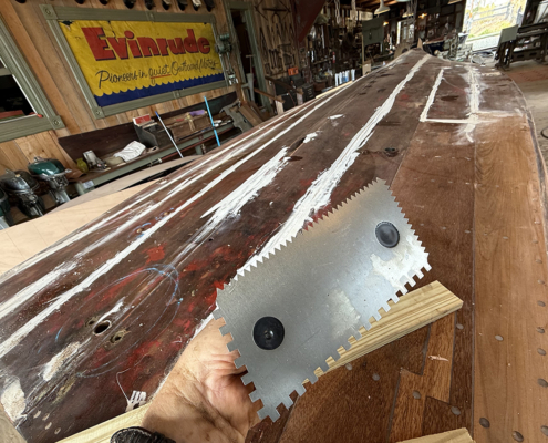 A huge thanks to Gary Michael from Inland Boat Works, who just sent us all a little hope in the form of a barn find. Dang, it always fills my heart with a childlike giddiness when I see a boat like this. Thanks Gary for the report. “I was called in early July to look